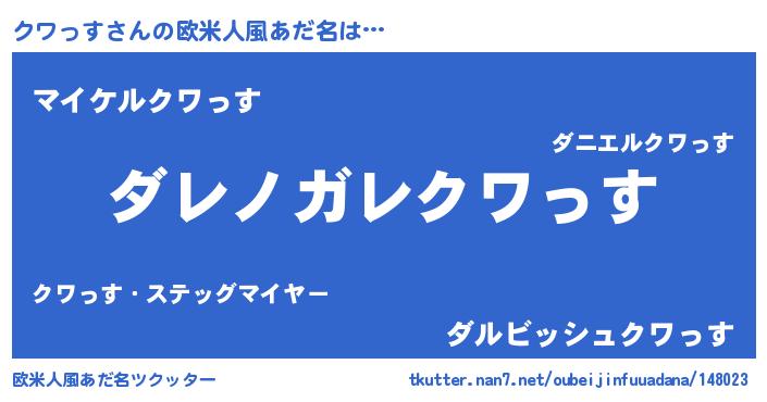 | 意味不明あだ名 | 『住所不定無職クワっす(8歳)』 |