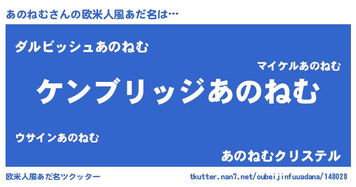 | 女子向けラノベタイトル風あだ名 | 『闇のあのねむ』『あのねむの雑貨屋さん』 |