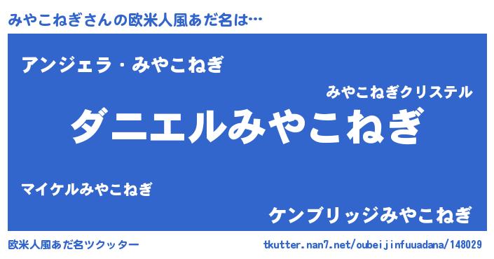 | 男性向けラノベタイトル風あだ名 | 『ノーゲーム・ノーミヤコネギ』 |