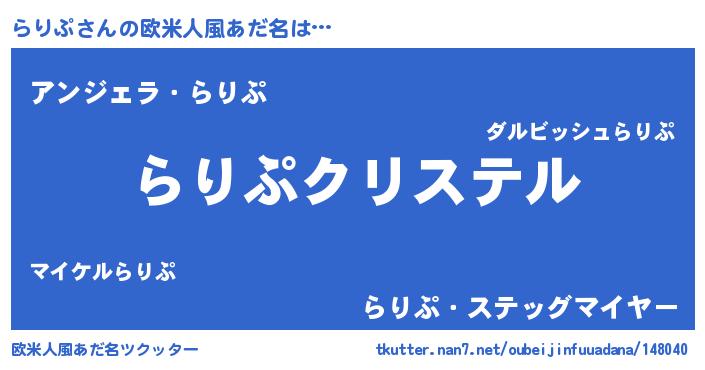 | 女子向けラノベタイトル風あだ名 | 『らりぷの雑貨屋さん』 |