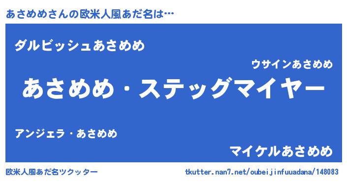 | 意味不明あだ名 | 『永久保存あさめめ』『ペロリンあさめめ』 |