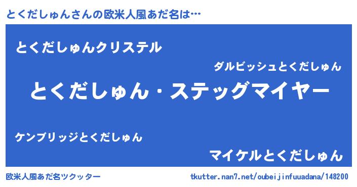 | 恥ずかしいあだ名 | 『とくっちょ』『プリティーとくだしゅん』 |