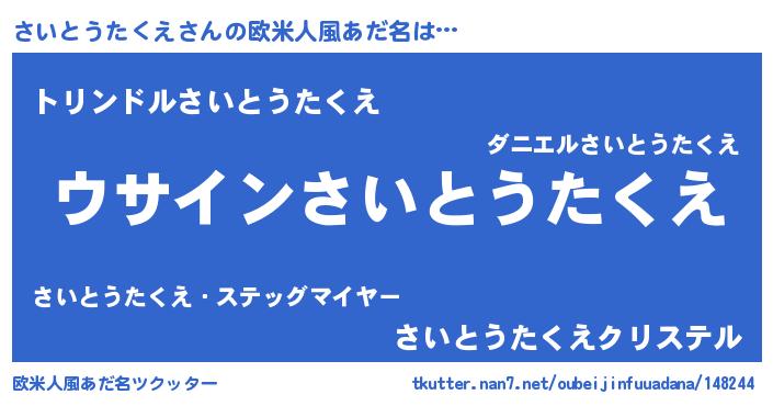 | 男性向けラノベタイトル風あだ名 | 『ダンジョンにさいとうたくえを求めるのは間違っているだろうか』 |