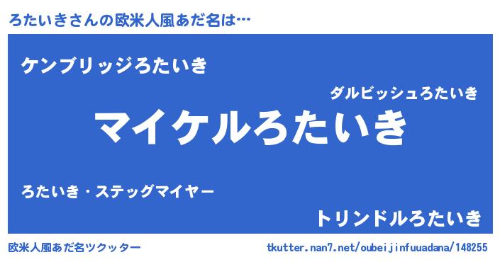 | 男性向けラノベタイトル風あだ名 | 『ロタイキアートオンライン』 |