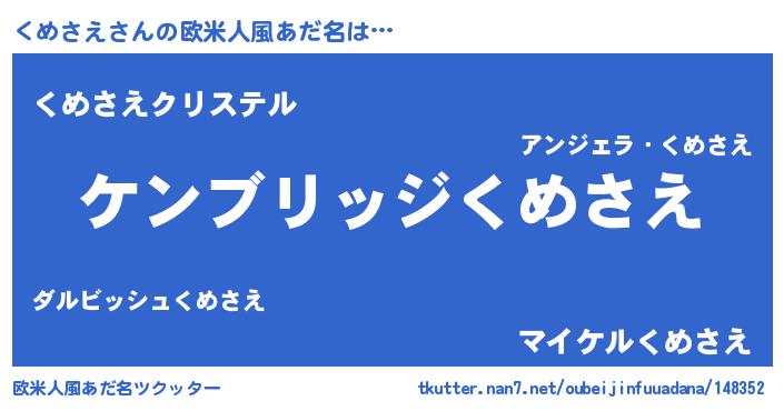 | 意味不明あだ名 | 『自称くめさえ』『くめさえフォーエバー』 |