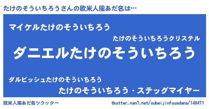 | ヘコむあだ名 | 『たけもー』『なまこ酢』『たけを』 |