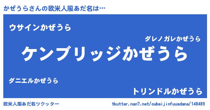 | 男性向けラノベタイトル風あだ名 | 『Re:かぜうらから始める異世界生活』 |