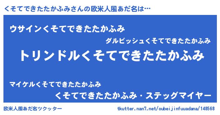 | 男性向けラノベタイトル風あだ名 | 『くそてできたたかふみ~年齢イコール彼女いない歴の魔法使い~』 |
