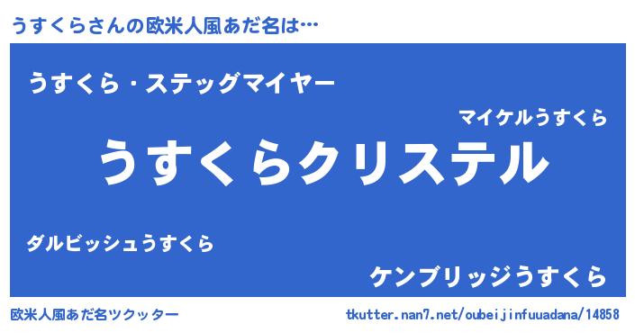 | 女子向けラノベタイトル風あだ名 | 『うすくらの雑貨屋さん』『闇のうすくら』 |