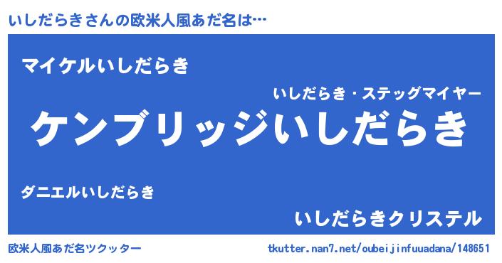 | 男性向けラノベタイトル風あだ名 | 『Re:いしだらきから始める異世界生活』 |