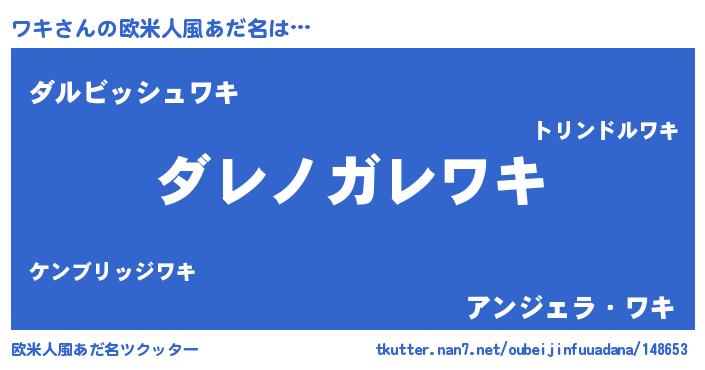 | ポケモン風あだ名 | 『ワーキイ』『ゼニワキ』『ワキゴンZ』 |