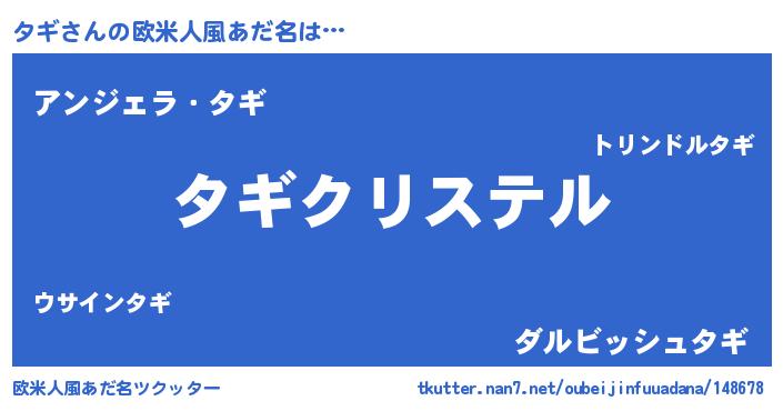 | 女子向けラノベタイトル風あだ名 | 『タギの雑貨屋さん』『タギ様がみてる』 |