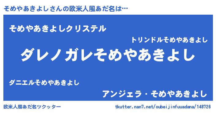 | 男性向けラノベタイトル風あだ名 | 『この素晴らしい世界にそめやあきよしを!』 |