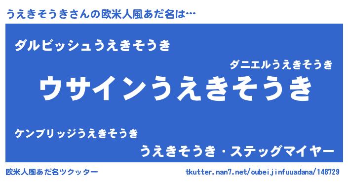 | 可愛いあだ名 | 『うっえぃー』『うえきそうきママ』 |