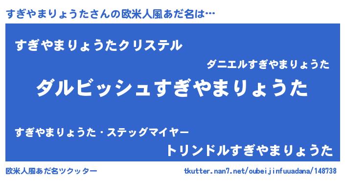 | 男性向けラノベタイトル風あだ名 | 『すぎやまりょうたという概念が存在しない退屈な世界 』 |