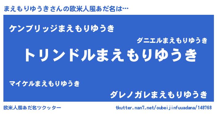 | 男性向けラノベタイトル風あだ名 | 『転生したらまえもりゆうきだった件』 |