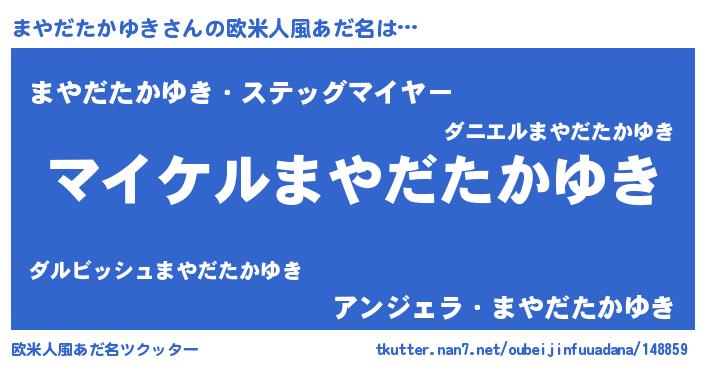 | 恥ずかしいあだ名 | 『プリティーまやだたかゆき』『まやちん』 |