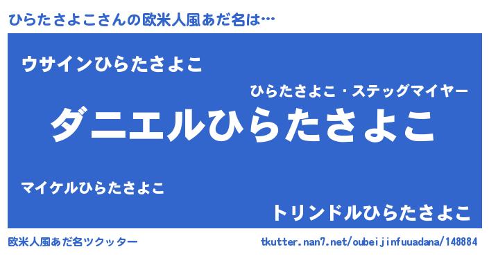 | 男性向けラノベタイトル風あだ名 | 『おまえをオタクにしてやるから、俺をひらたさよこにしてくれ! 』 |