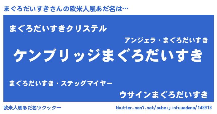 | 意味不明あだ名 | 『自称まぐろだいすき』 |