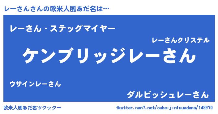 | 男性向けラノベタイトル風あだ名 | 『Re:レーさんから始める異世界生活』 |