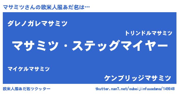 | 男性向けラノベタイトル風あだ名 | 『緋弾のマサミツ』『魔弾の王とマサミツ』 |