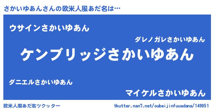 | 意味不明あだ名 | 『自称さかいゆあん』 |