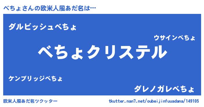 | ファンタジー風あだ名 | 『エターナルベチョー』『ベチディッシュ』 |