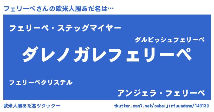 | 男性向けラノベタイトル風あだ名 | 『この素晴らしい世界にフェリーペを!』 |