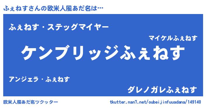 | 男性向けラノベタイトル風あだ名 | 『Re:ふぇねすから始める異世界生活』 |