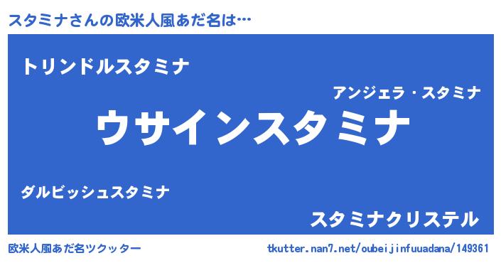 | 男性向けラノベタイトル風あだ名 | 『スタミナの嫁は女の子じゃないと思った?』 |