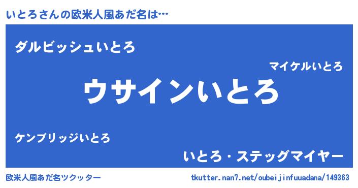 | 男性向けラノベタイトル風あだ名 | 『いとろの嫁は女の子じゃないと思った?』 |