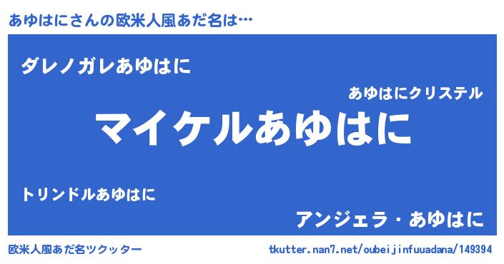 | 男性向けラノベタイトル風あだ名 | 『あゆはにの憂鬱』『魔弾の王とあゆはに』 |