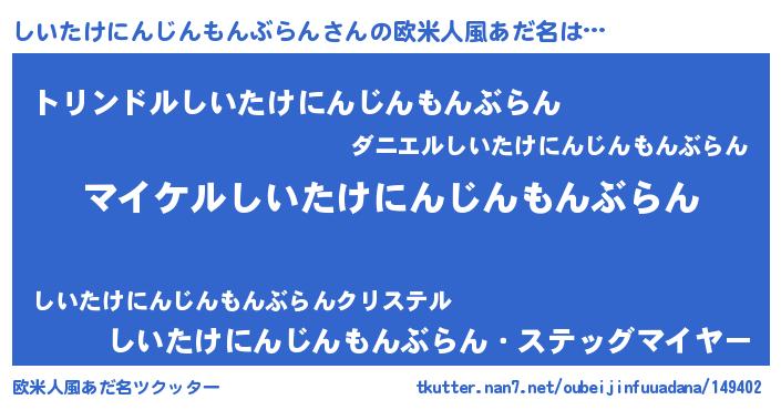 | 男性向けラノベタイトル風あだ名 | 『シイタケニンジンモンブランアートオンライン』 |