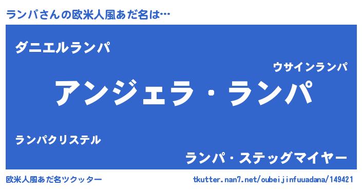| 男性向けラノベタイトル風あだ名 | 『ランパに滅ぼされるだけの簡単なお仕事です』 |