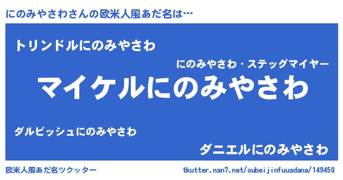 | 男性向けラノベタイトル風あだ名 | 『にのみやさわの憂鬱』 |