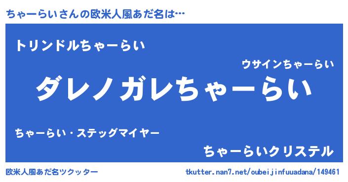 | 料理風あだ名 | 『ちゃーらいのカルパッチョ風』 |