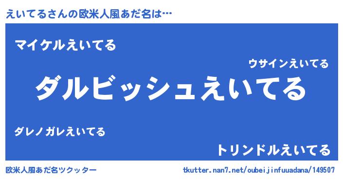 | 男性向けラノベタイトル風あだ名 | 『えいてるという概念が存在しない退屈な世界 』 |