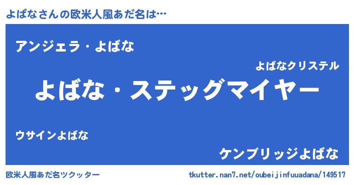 | 意味不明あだ名 | 『自称よばな』『よばなフォーエバー』 |
