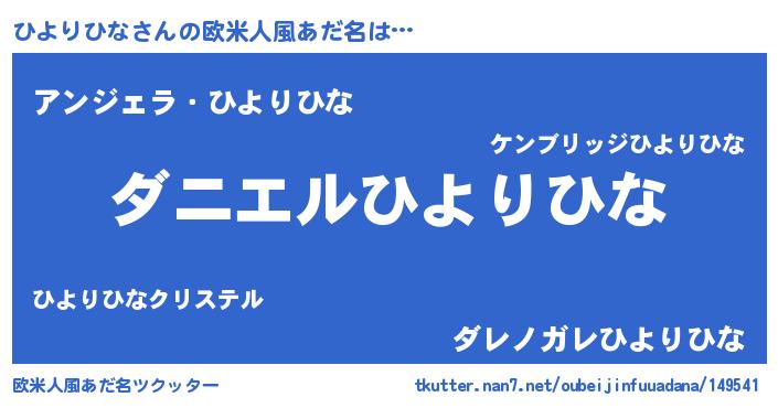 | 女子向けラノベタイトル風あだ名 | 『ひよりひな恋絵巻』 |