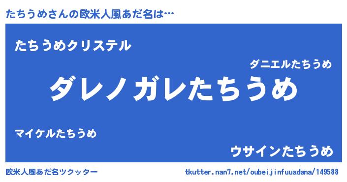| 男性向けラノベタイトル風あだ名 | 『魔弾の王とたちうめ』『たちうめの憂鬱』 |