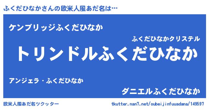| 男性向けラノベタイトル風あだ名 | 『転生したらふくだひなかだった件』 |