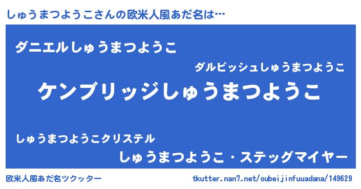 | 意味不明あだ名 | 『自称しゅうまつようこ』 |