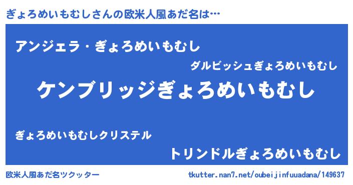 | ヘコむあだ名 | 『ぎょろめいもむし(遠い目)』『つくし』 |