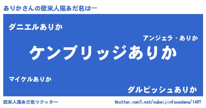 | 男性向けラノベタイトル風あだ名 | 『Re:ありかから始める異世界生活』 |