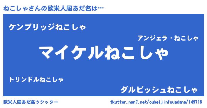 | ヒーロー風カッコイイあだ名 | 『スーパーネコシャ』『最強戦士ネコシャ』 |