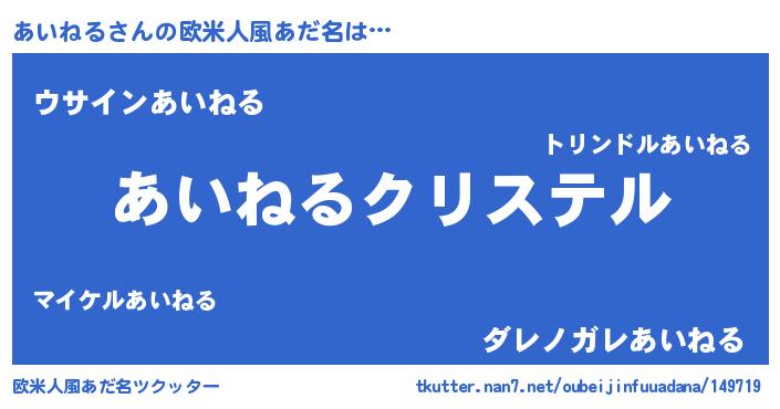 | 男性向けラノベタイトル風あだ名 | 『うちの娘の為ならば、俺はもしかしたらあいねるも倒せるかもしれない。』 |