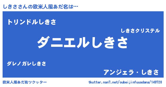 | 女子向けラノベタイトル風あだ名 | 『しきさ恋絵巻』『しきさの玉の輿計画!』 |