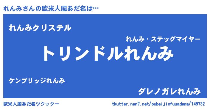 | 男性向けラノベタイトル風あだ名 | 『れんみ~年齢イコール彼女いない歴の魔法使い~』 |