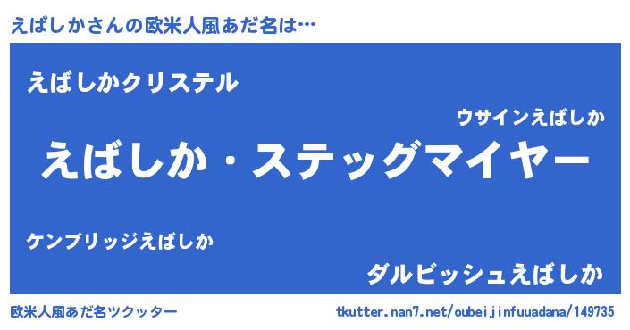 | ヒーロー風カッコイイあだ名 | 『ウルトラえばしかマン』『ネオエバシカ』 |