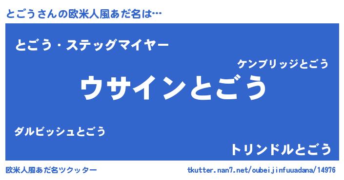 | 男性向けラノベタイトル風あだ名 | 『とごうの嫁は女の子じゃないと思った?』 |